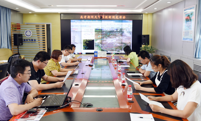 高考期间天气预报新闻发布会现场? 莱芜政府网? ?崔永恒 摄 6月5日下午4时,市气象局发布高考期间天气预报,预计高考期间我市大部分地区天气晴好,有35℃以上的高温;7-8日受东北冷涡影响,有局地雷雨,雷雨时阵风7-8级。 6日,晴转多云,南风4~5级,气温22~35℃。 7日,多云转阴,下午局部有雷雨,南风3~4级,气温23~35℃。上午,多云,26~33℃;下午,多云转阴,局部有雷雨,29~35℃;夜间,多云,23~29℃。 8日,多云转阴,下午到夜间有雷雨,南风转北风3~4级,气温23~34℃。上午,多云,26~32℃;下午,多云转阴,局部有雷雨,28~34℃;夜间,多云转阴有雷雨,19~28℃。 气象部门提醒广大市民,尤其是参加高考的考生,一定要注意防暑降温;另外,要关注雷雨天气,安排好行程,以免耽误考试时间。 |